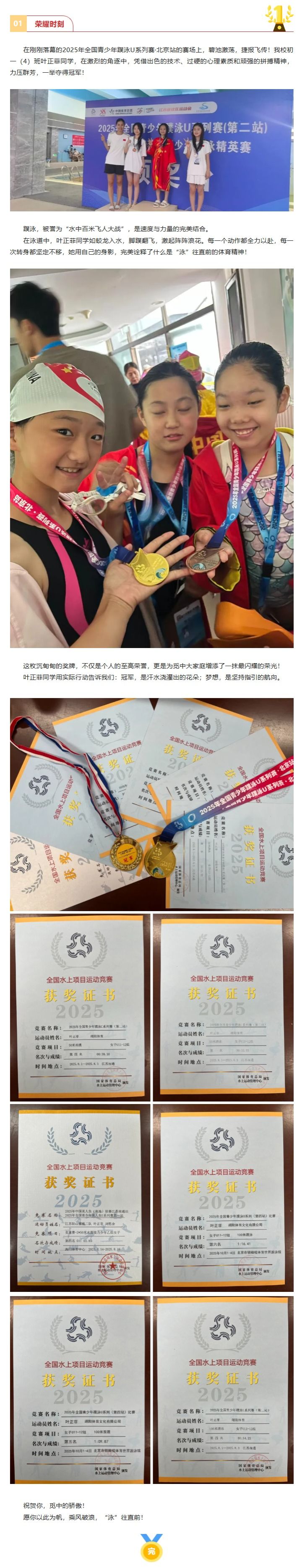 浪花里的追风少年!为我校叶正菲同学的全国冠军喝彩!