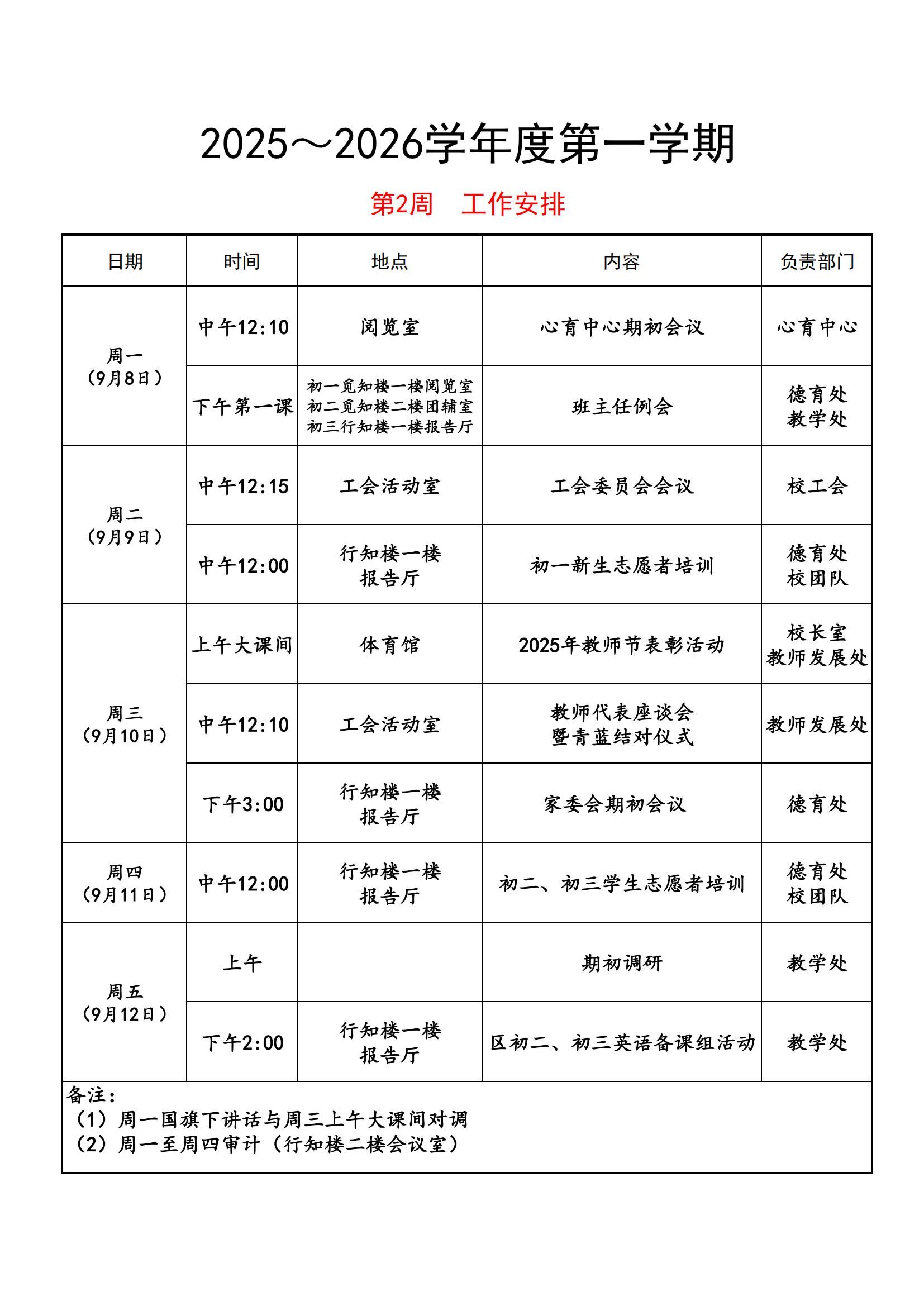 第二周工作安排