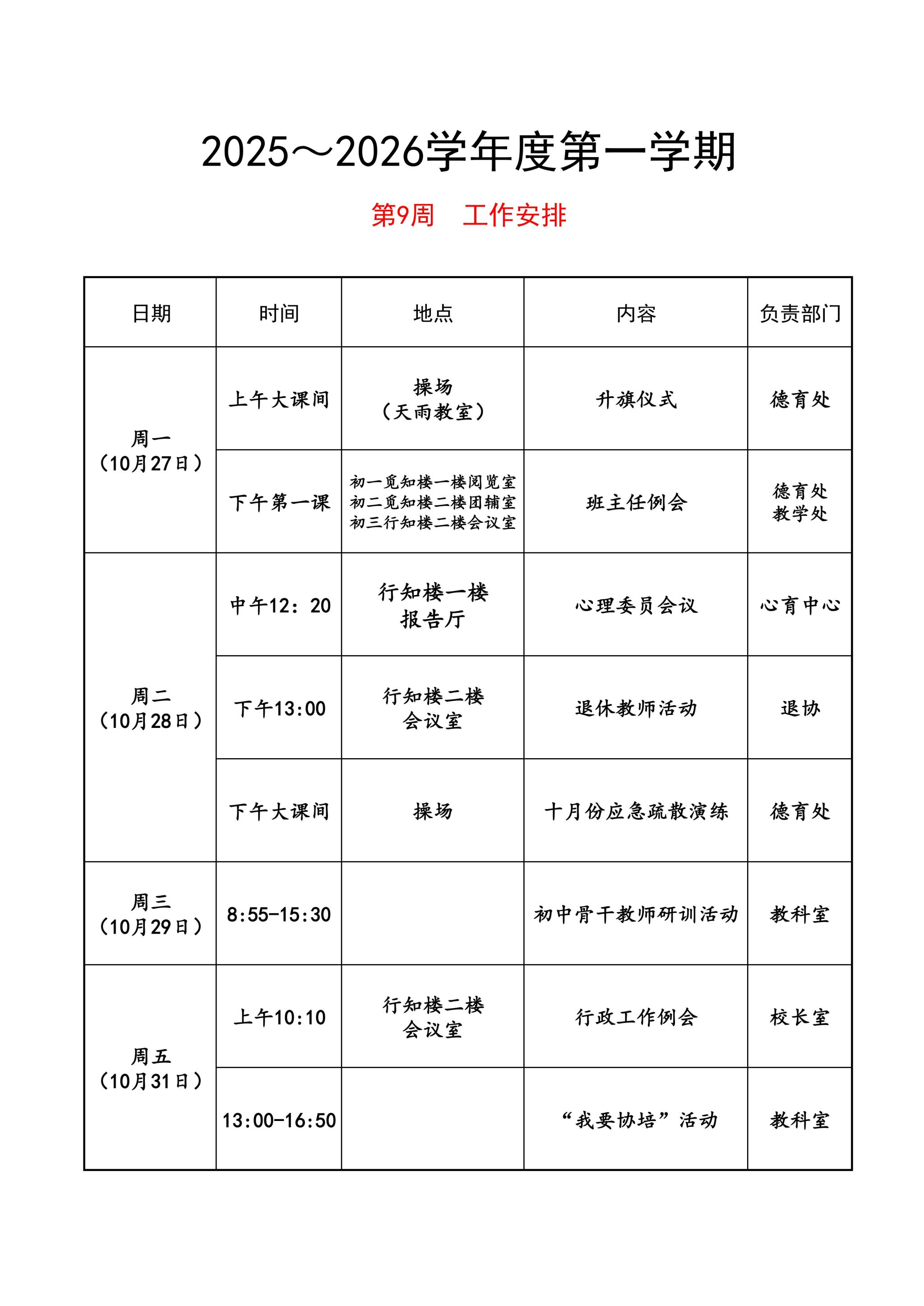 第九周工作安排