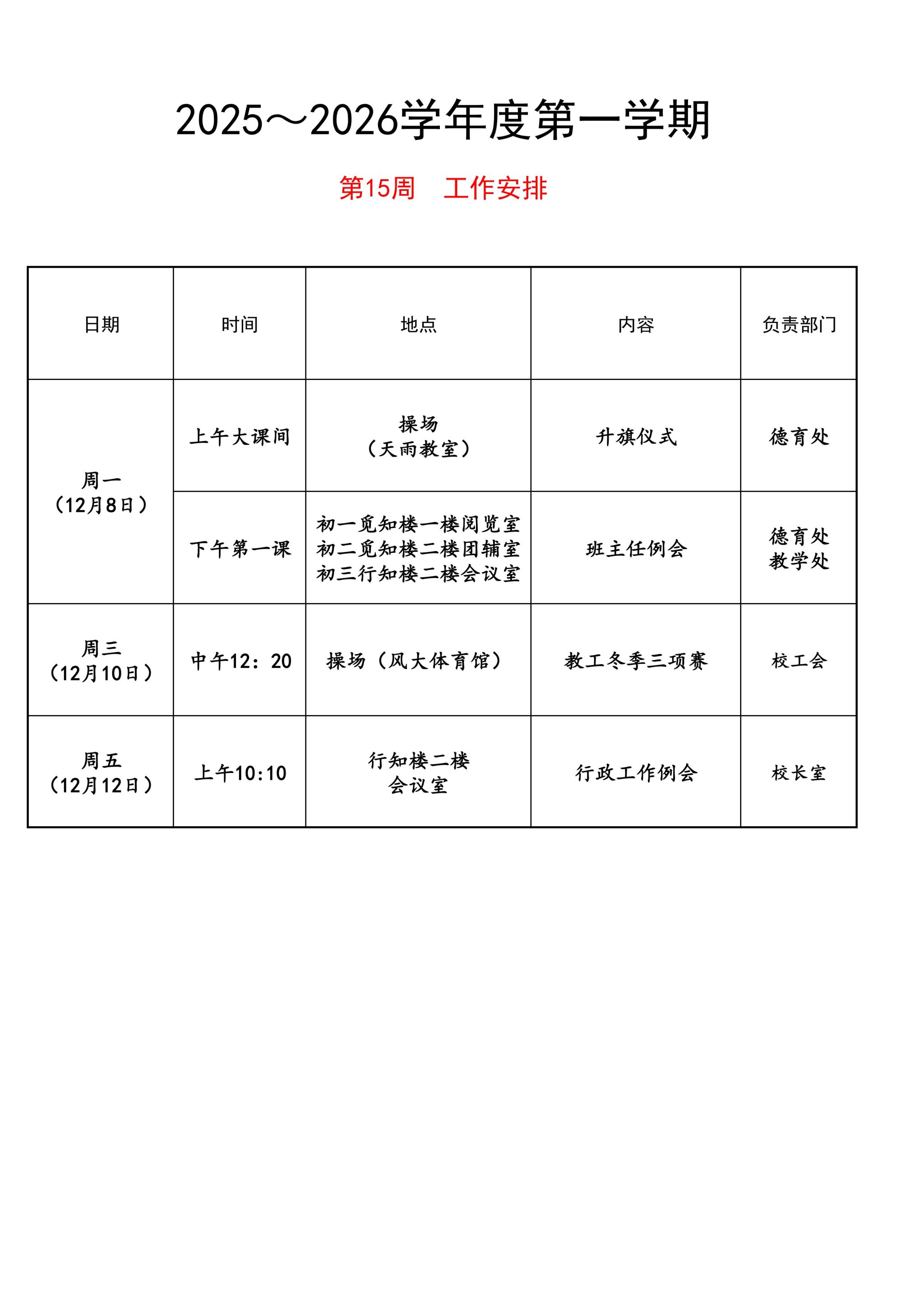 第十五周工作安排