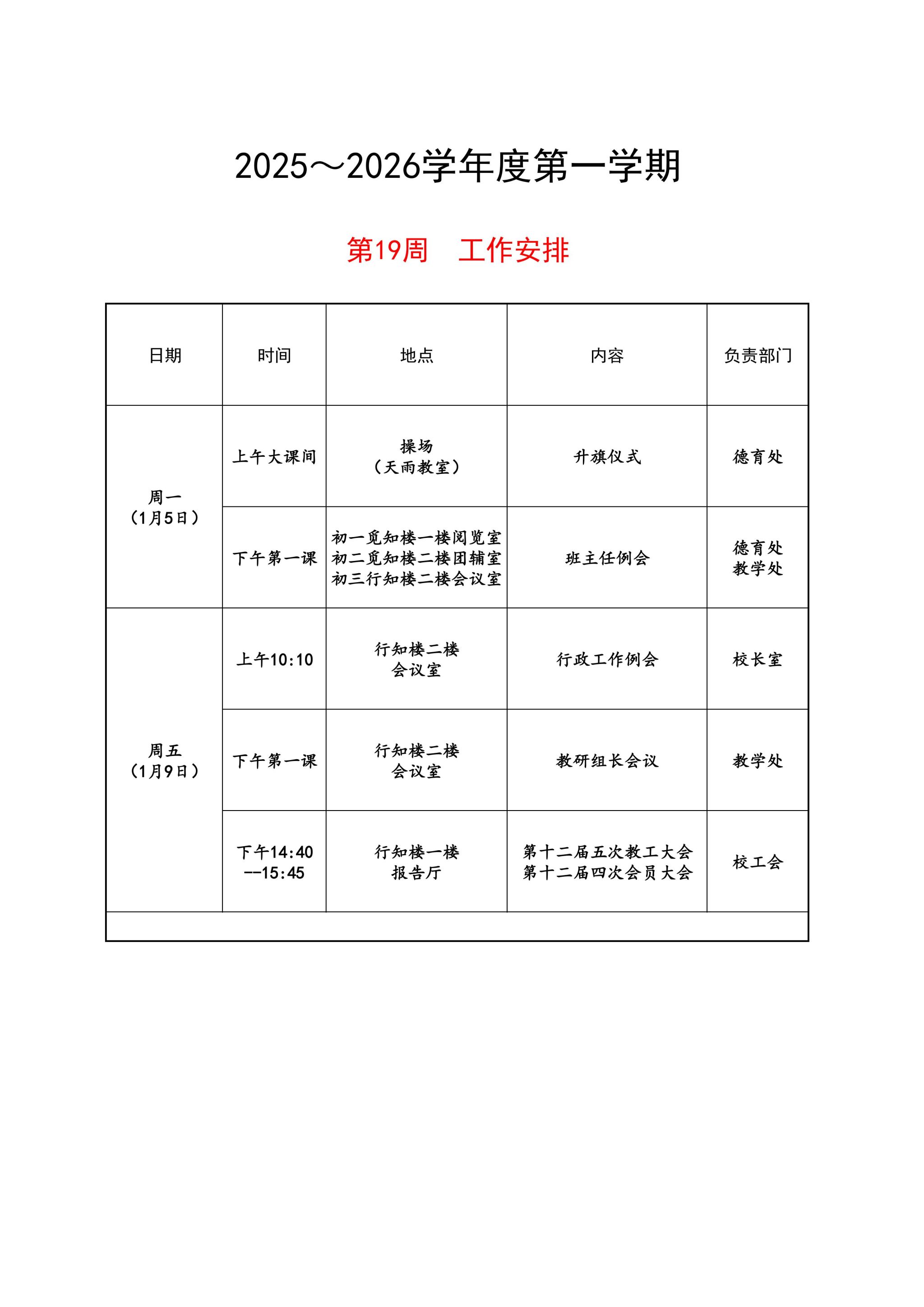 第十九周工作安排