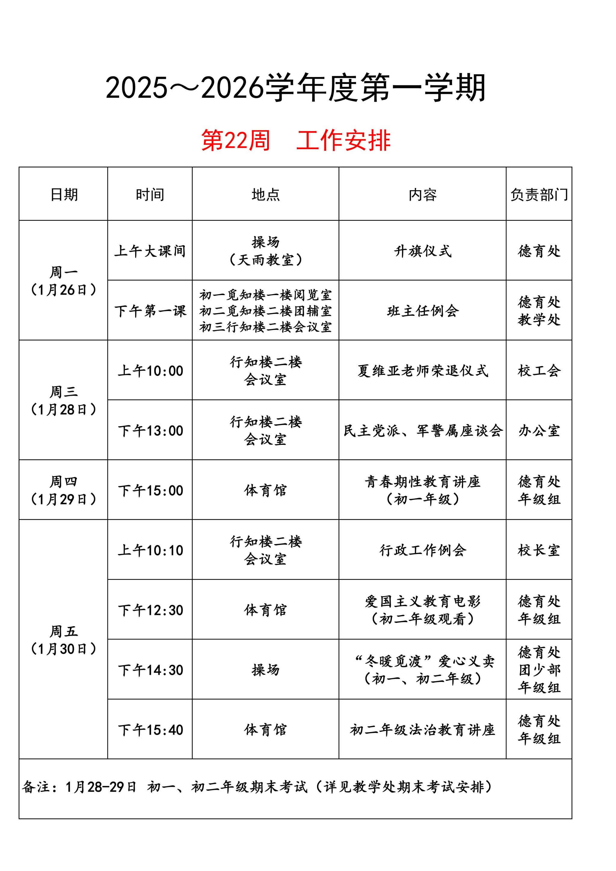 第二十二周工作安排