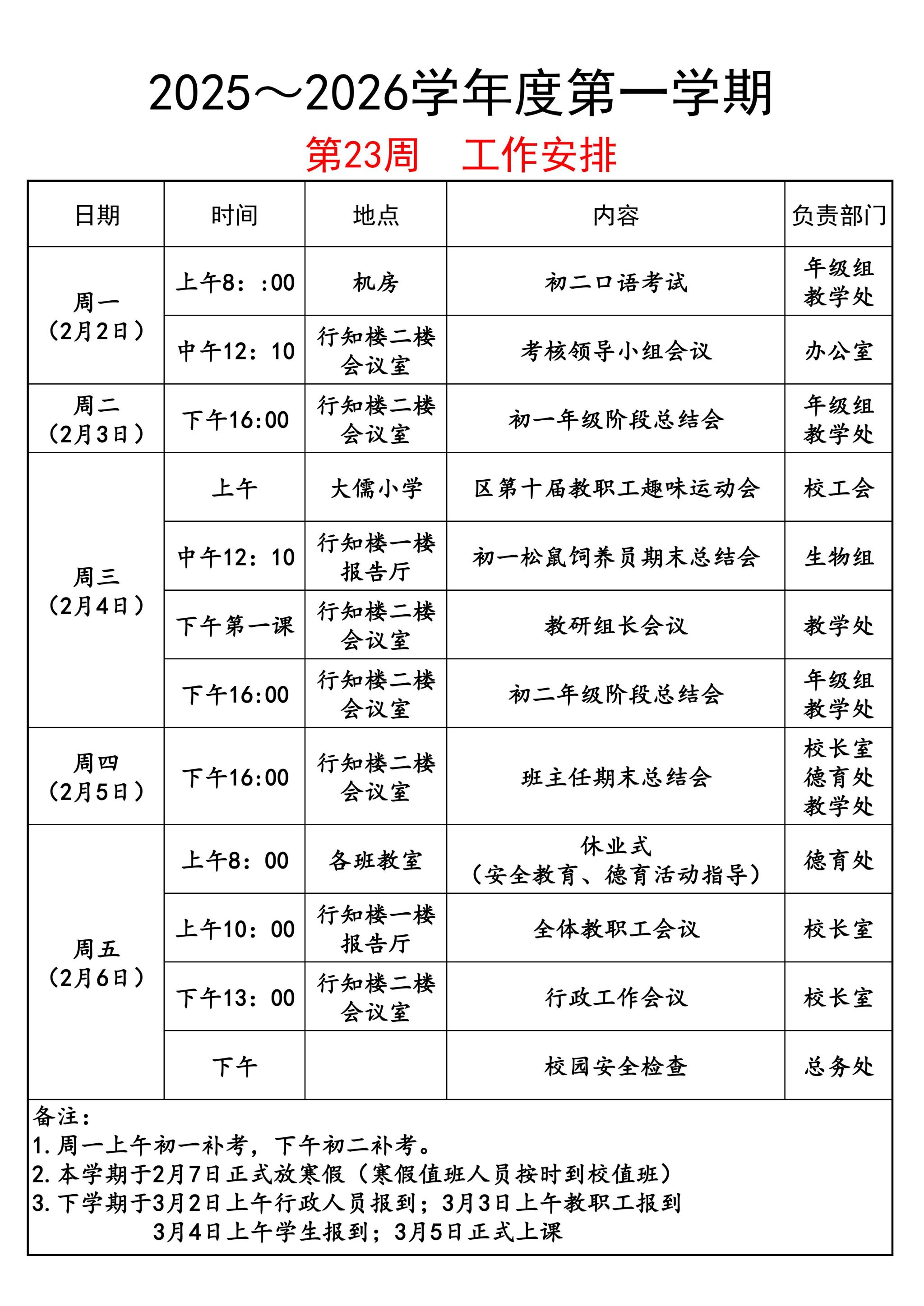 第二十三周工作安排